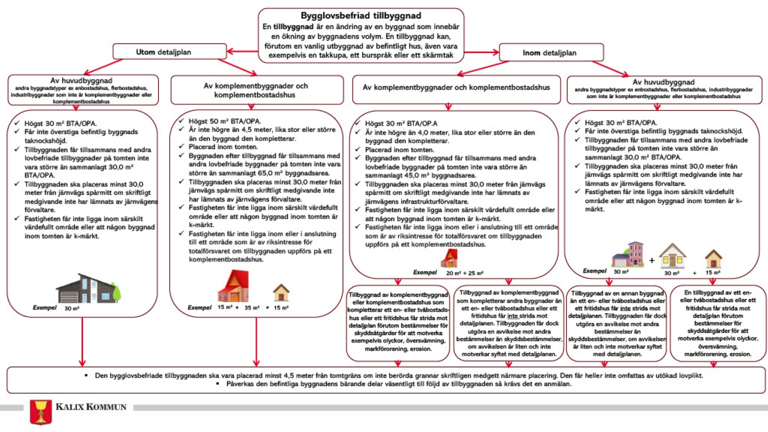 Även om du inte behöver söka bygglov så finns det andra krav i plan- och bygglagen, plan- och byggförordningen och Boverkets byggregler som du behöver uppfylla. En bygglovsbefriad åtgärd ska bland annat uppfylla tekniska egenskapskrav och kravet på tillgänglighet och användbarhet för personer med nedsatt rörelse- eller orienteringsförmåga. Det är viktigt att komma ihåg att som fastighetsägare ansvarar du själv för att följa gällande lagstiftning och alla förutsättningar som gäller för just din fastighet. Det är därför viktigt att förstå och sätta sig in i vilka krav som gäller för just din fastighet och den åtgärd du vill göra. Läs mer på Boverkets webbplats om vad som gäller.