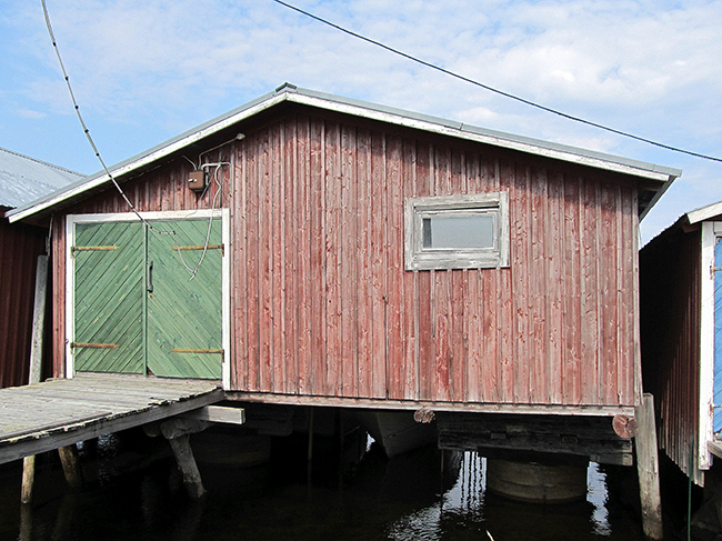 Användes som saltbodar. Saltkaret som var placerat mitt i bodan hölls svalt genom timmerväggarna. Gavelutskottets golv användes som förvaringsutrymme och plankgolvet på utsidan användes för förvaring av fiskeredskap. Redskapen kunde även hänga på takåsarna.