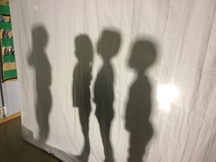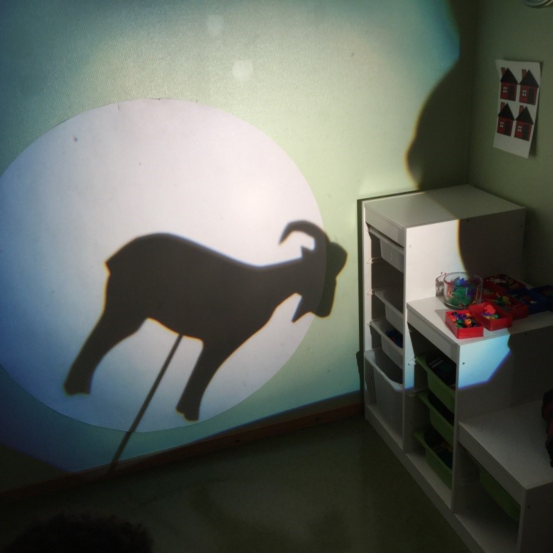 - Utforskar vad som händer med skuggan om de flyttar ett föremål längre från eller närmare ljuskällan och studerar varandras skuggor. Vi dramatiserar och gör en skuggteater.