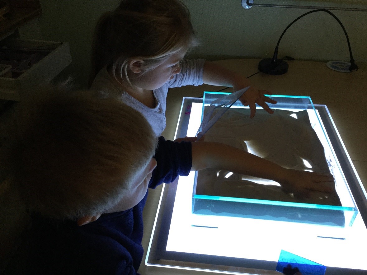 - Barnen undersöker vad som händer när de placerar ett föremål framför en ljuskälla